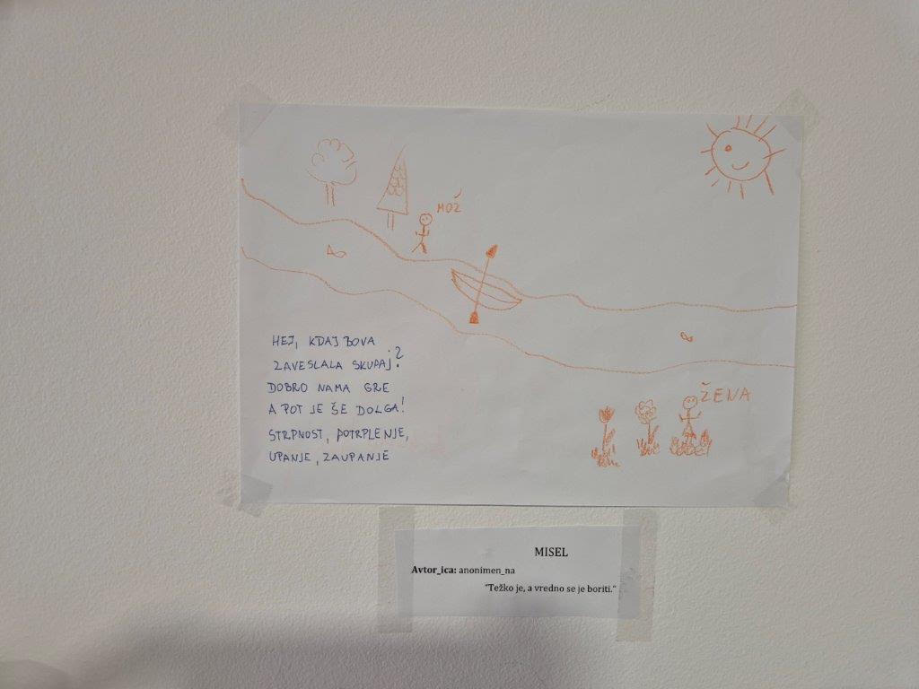 Spremne besede k razstavi: “Vsako delo nosi del osebne izkušnje – izkušnje stiske, odnosa, podpore, izgube, vztrajanja in okrevanja. razstava odpira prostor za razumevanje kompleksnosti življenjskih situacij, ki ne zaznamujejo le posameznice ali posameznika, temveč tudi njene oziroma njegove bližnje.”
