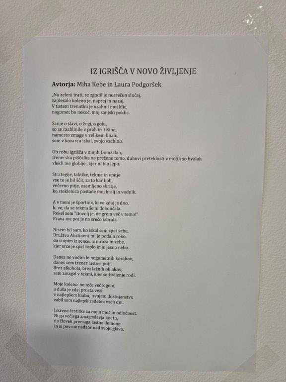 Na razstavi niso zgolj umetniški izdelki, temveč zgodbe, ki vabilo k poslušanju, razumevanju in spoštovanju. Razstava je opomnik, da okrevanje ni pot posameznice ali posameznika samega, temveč proces, v katerem pomembno mesto nosijo predvsem odnosi, bližina in podpora.“